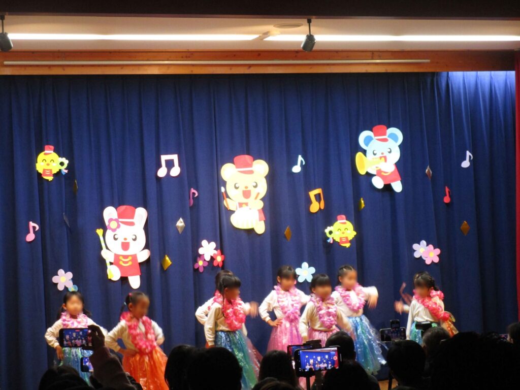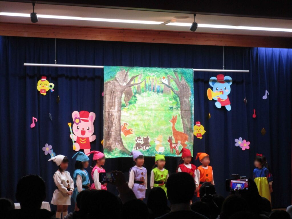 2025年12月22日 はっぴょう会行いました! 令和7年12月13日 3・4・5歳の各クラスが思考を凝らし、歌や合奏・劇・踊りとバラエティー豊かに発表しました。 前日から「緊張するわ」という子もいましたが、子供たちは笑顔で演じることができました。