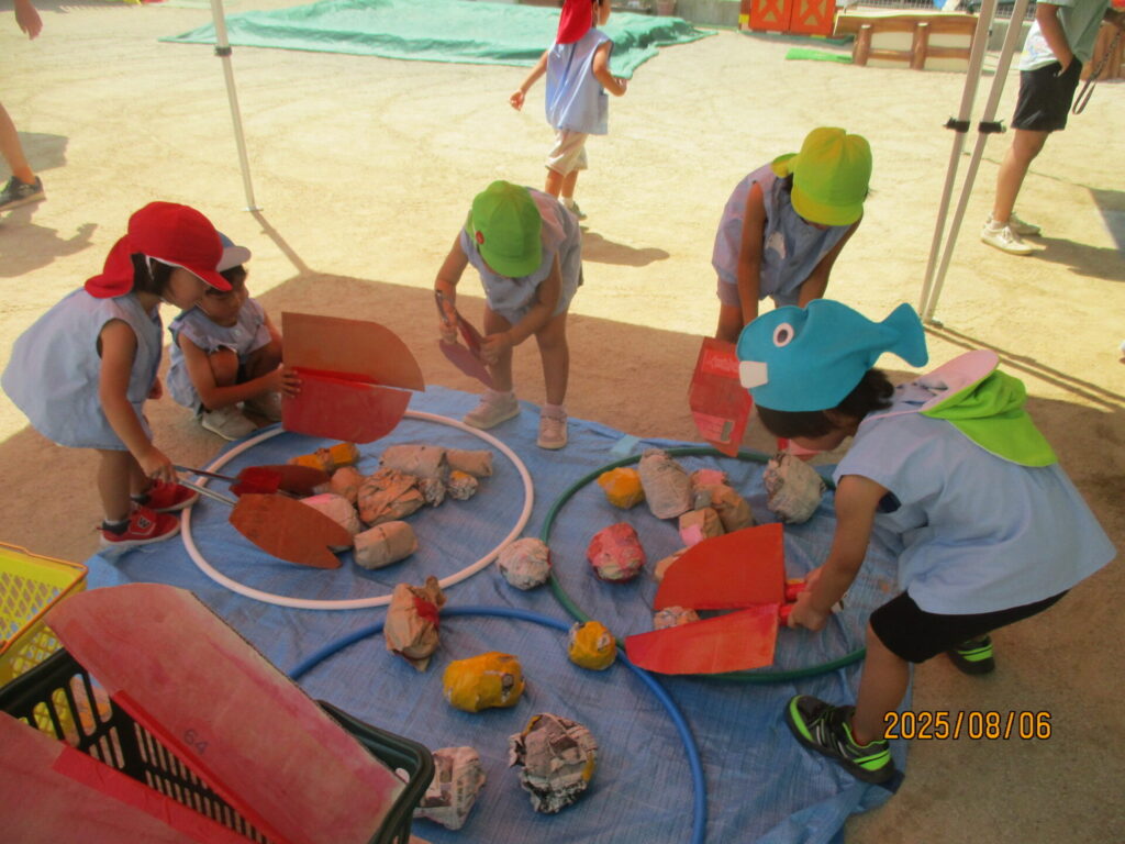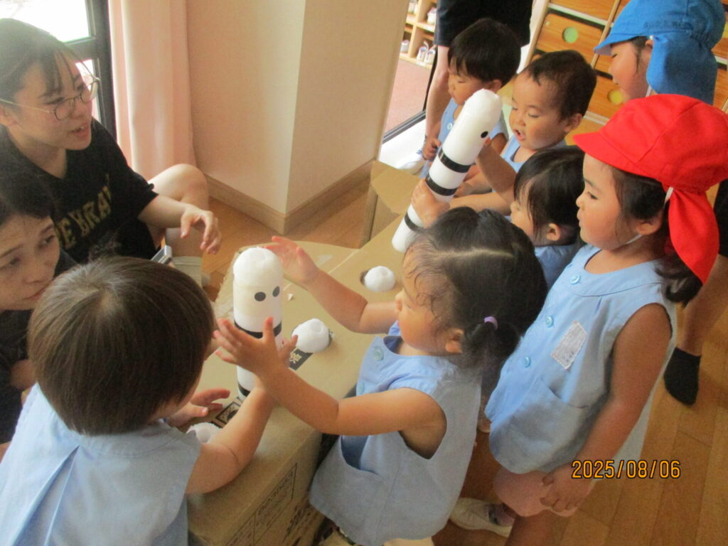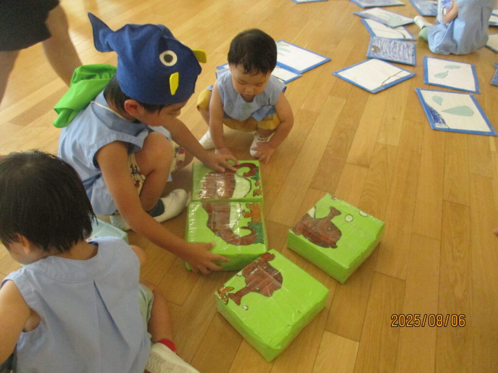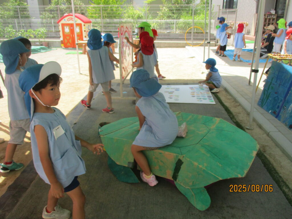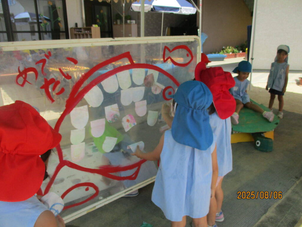2026年02月21日 水の生き物ごっこ 夏にしたごっこ遊びの様子です! 投稿したつもりができていなかったので、季節外れですがせっかくなので投稿しますね(^^) 子どもたちも先生たちも、いろんな生き物を作って楽しみました🐟